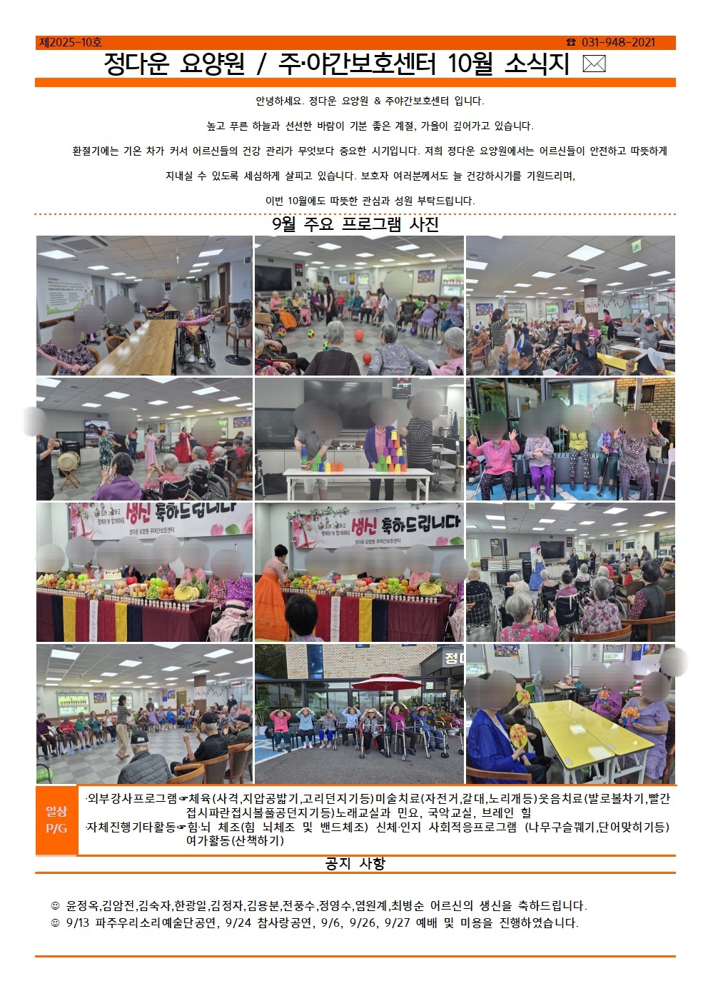 정다운요양원 10월 소식지