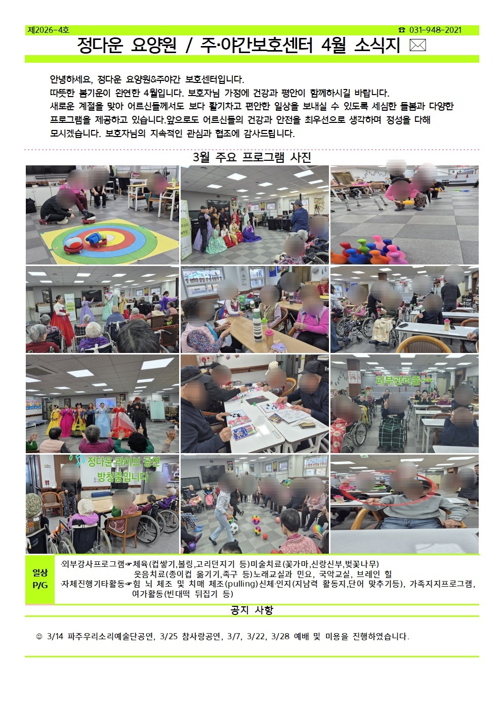 2026년 정다운요양원 4월 소식지